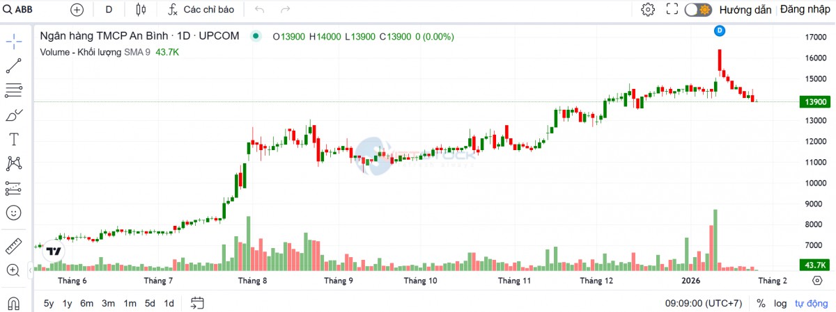 Trên thị trường chứng khoán, chốt phiên giao dịch ngày 26/1, cổ phiếu ABB ghi nhận diễn biến kém tích cực với giá đóng cửa là 13.900 đồng/cp, tương ứng mức giảm 300 đồng, tương đương 2,11% so với phiên cuối tuần trước, khối lượng khớp lệnh đạt gần 1,8 triệu cổ phiếu, cao gấp khoảng 2,5 lần so với mức hơn 719.000 cổ phiếu của phiên trước.
