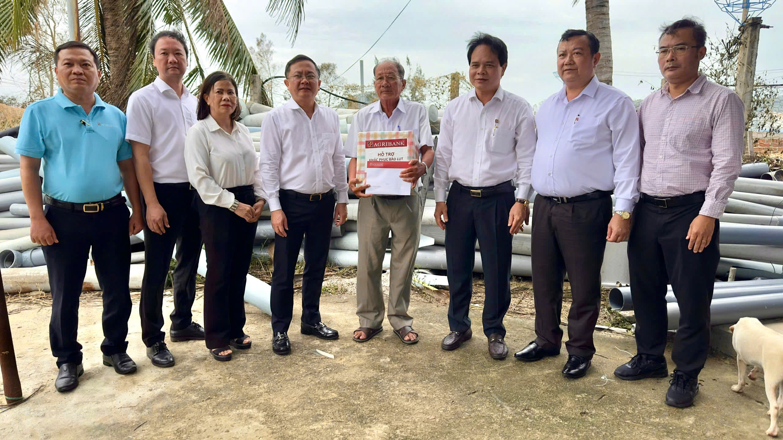 Đoàn công tác Agribank cũng đã đến thăm, động viên Công ty TNHH Ngọc Châu – khách hàng nuôi tôm tại xã Đề Gi (Gia Lai) bị thiệt hại nặng do bão. Phó Tổng Giám đốc Vương Hồng Lĩnh trao 20 triệu đồng hỗ trợ doanh nghiệp, đồng thời chỉ đạo Chi nhánh Bình Định triển khai các chính sách tín dụng ưu đãi giúp doanh nghiệp sớm khôi phục hoạt động.
