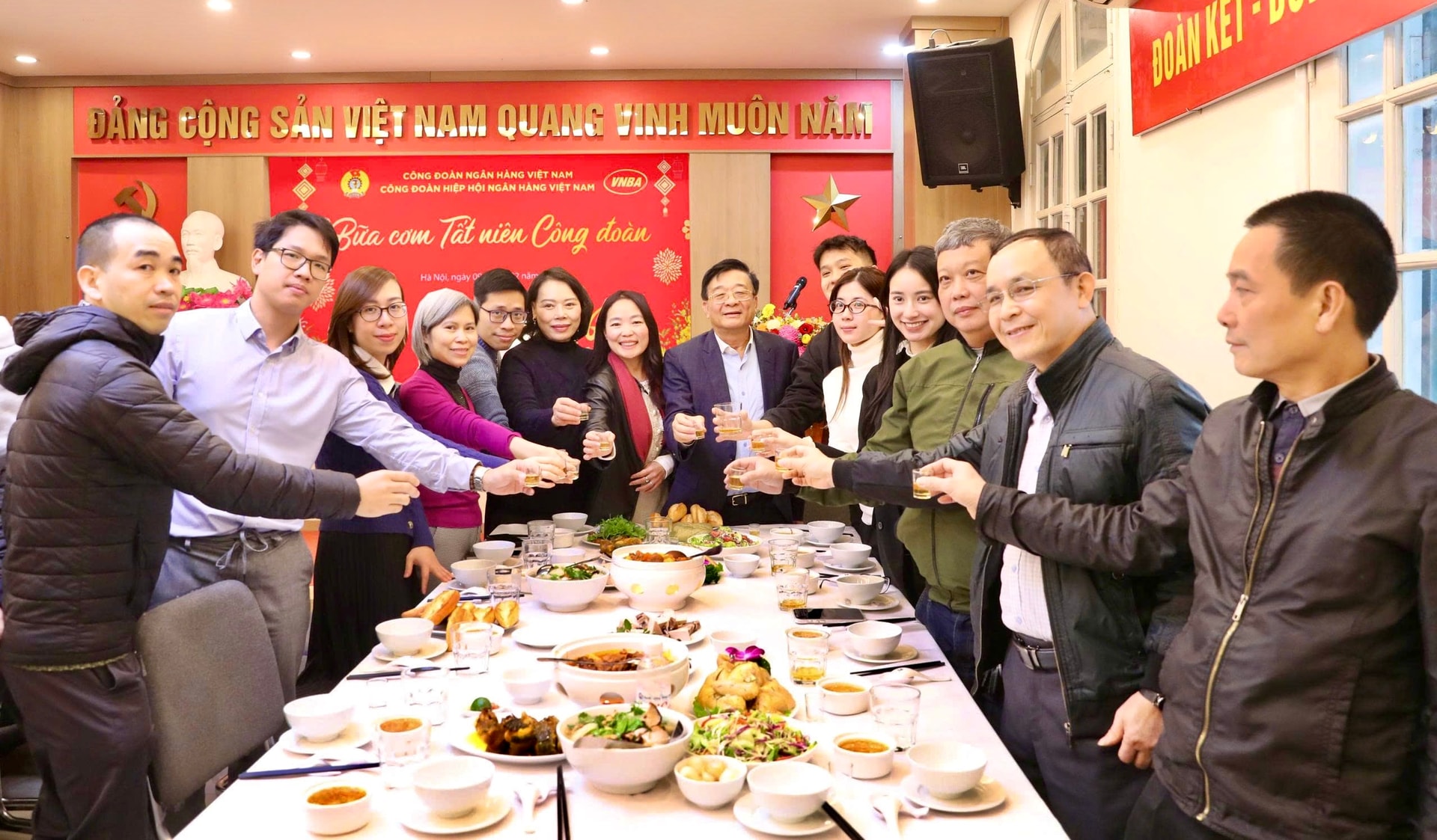 “Bữa cơm Tất niên Công đoàn” được Công đoàn Cơ sở Hiệp hội Ngân hàng Việt Nam phối hợp tổ chức tại trụ sở Hiệp hội Ngân hàng Việt Nam, số 193 Bà triệu, phường Hai Bà Trưng, Hà Nội, tạo không gian gặp gỡ, gắn kết cho toàn thể cán bộ, đoàn viên.