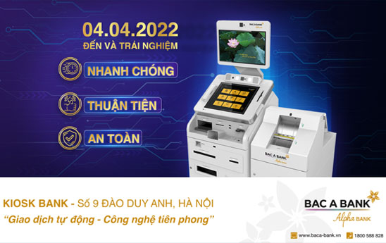 Ngày 04/4/2022, Ngân hàng Bắc Á (BacABank) chính thức ra mắt Kiosk Bank - Điểm giao dịch tự động đầu tiên tại số 9 Đào Duy Anh, Hà Nội - cho phép khách hàng chủ động thao tác nhiều dịch vụ ngân hàng mà không cần trực tiếp đến quầy giao dịch.