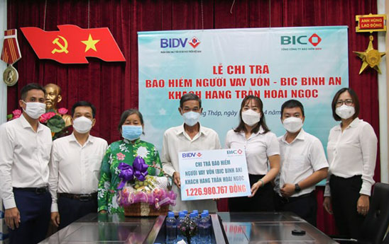 Tổng Công ty Bảo hiểm Ngân hàng Đầu tư và Phát triển Việt Nam (BIC) vừa tổ chức trao hơn 1,2 tỷ đồng tiền bảo hiểm người vay vốn - BIC Bình An - cho gia đình khách hàng Trần Hoài Ngọc, trú tại TP. Cao Lãnh, tỉnh Đồng Tháp.