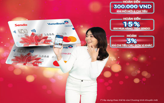 - Hoàn 100.000 VND cho khách hàng khi phát hành, kích hoạt và chi tiêu tích lũy đạt từ 200.000 VND, hoàn thêm 200.000 VND cho khách hàng khi chi tiêu tích lũy đạt từ 1.000.000 VND trở lên.