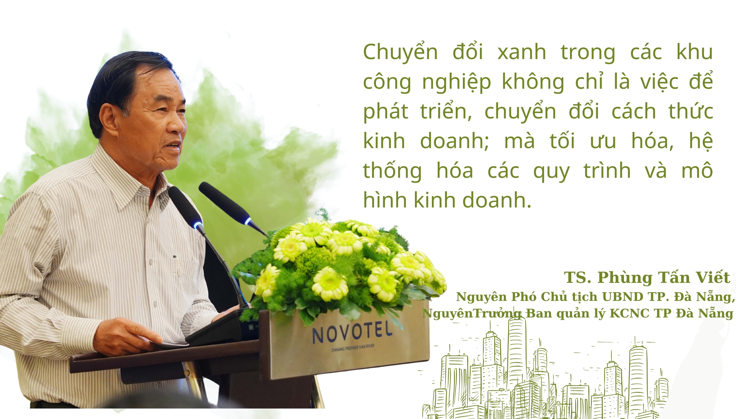 Đây là nguồn hỗ trợ quan trọng để Đà Nẵng vững hướng bước hướng đến mục tiêu xanh hóa các khu công nghiệp truyền thống. TS. Phùng Tấn Viết cho biết, tại thành phố Đà Nẵng, chính quyền thành phố đã có nhiều sự quan tâm về vấn đề này từ rất sớm. Thành phố Đà Nẵng là địa phương duy nhất ở miền Trung và là một trong ba tỉnh thành đầu tiên của cả nước tham gia thí điểm các giải pháp chuyển đổi theo mô hình KCN sinh thái trong khuôn khổ Dự án hợp tác của Bộ Kế hoạch và Đầu tư. Thông qua đó, hầu hết doanh nghiệp tại các KCN trên địa bàn thành phố đã có những hiểu biết nhất định về KCN sinh thái và ý nghĩa của việc chuyển đổi trong thời gian đến, để thu hút đầu tư FDI. Lũy kế đến nay, trên địa bàn thành phố Đà Nẵng đã thu hút được 524 dự án đầu tư vào khu công nghiệp cao, Khu CNTTTT - giai đoạn 1 và các KCN. Tổng cộng tổng vốn đăng ký đầu tư vào các KCN tương đương khoảng 3,6 tỷ USD.