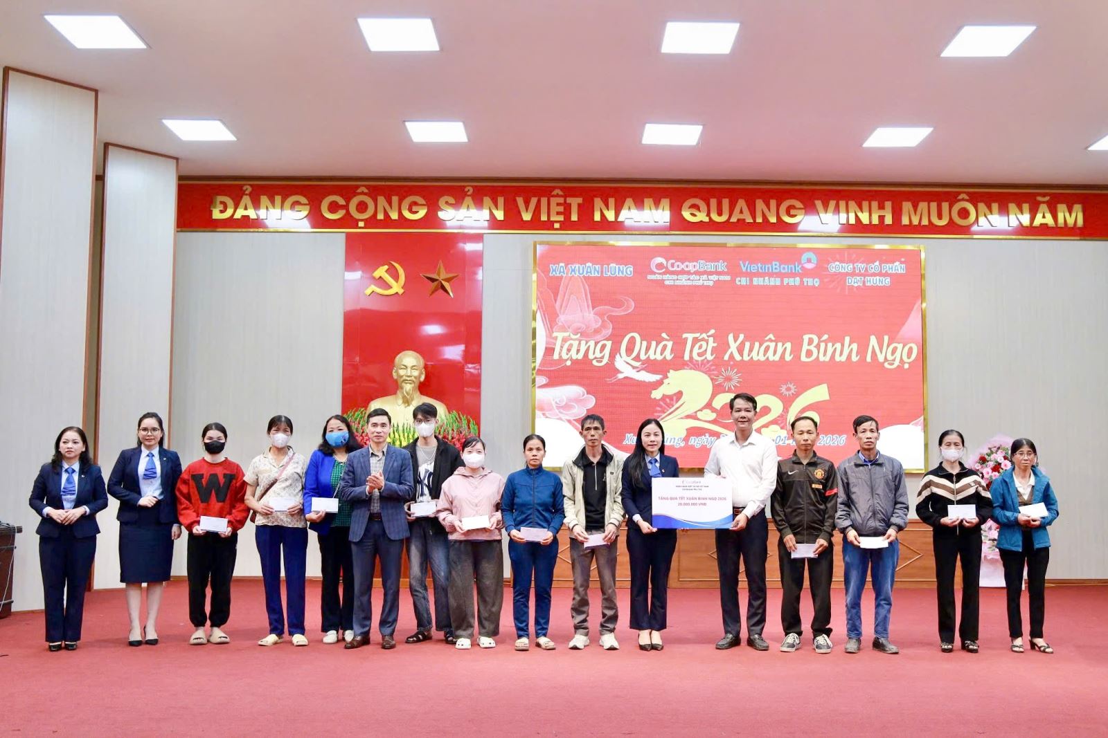 Cụ thể, chiều 30/01/2026, Ủy ban Mặt trận Tổ quốc Việt Nam xã Xuân Lũng và phường Việt Trì (tỉnh Phú Thọ) phối hợp với Co-opBank Phú Thọ tổ chức chương trình trao quà Tết cho các hộ nghèo, hộ cận nghèo và gia đình có hoàn cảnh khó khăn trên địa bàn.