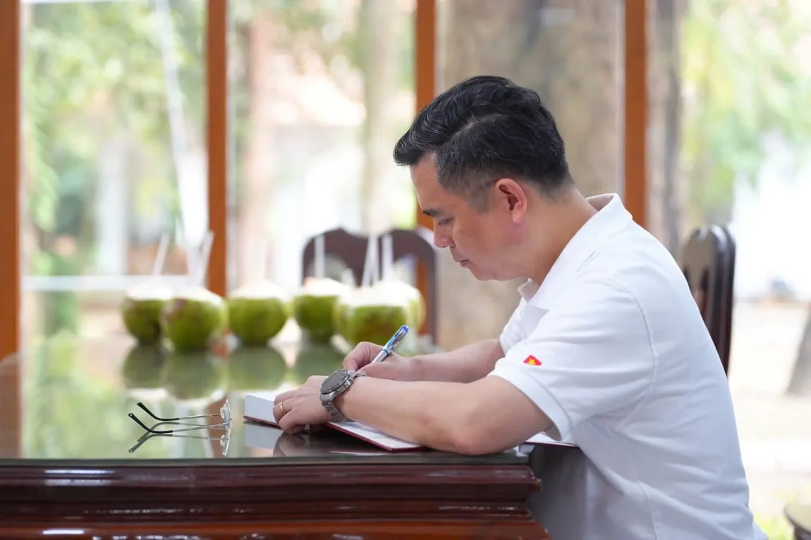 Đ/c Nguyễn Thanh Tùng - Uỷ viên BCH Đảng bộ Chính phủ, Bí thư Đảng ủy, Chủ tịch HĐQT - Trưởng đoàn công tác Đảng bộ Vietcombank trân trọng ghi lại những cảm xúc sâu sắc trong sổ cảm tưởng sau chuyến tham quan ý nghĩa và đầy tự hào