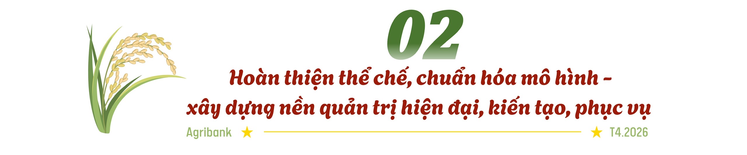 Để các định hướng phát triển không dừng lại ở chủ trương, Agribank tập trung ưu tiên cao cho công tác xây dựng và hoàn thiện đồng bộ thể chế, coi đây là nhiệm vụ then chốt, khơi thông nguồn lực, tạo không gian phát triển mới và đảm bảo tăng trưởng bền vững, cụ thể: tập trung rà soát, sửa đổi, bổ sung và hoàn thiện hệ thống cơ chế, chính sách, bảo đảm đồng bộ, thống nhất và phù hợp với thực tiễn; từng bước xây dựng hệ thống văn bản định chế hoàn chỉnh, khả thi, tạo hành lang pháp lý minh bạch cho hoạt động. Ngay trong quý II, hoàn thành 70 quy định, hướng dẫn nội bộ nhằm chuyển hóa nhanh chủ trương thành hành động cụ thể. Trọng tâm là tháo gỡ các điểm nghẽn về cơ chế, chính sách, qua đó không chỉ tạo điều kiện thuận lợi cho tổ chức thực thi, khắc phục tình trạng “lách luật”, mà còn củng cố niềm tin của cán bộ, khách hàng. Đồng thời, Agribank tiếp tục đẩy mạnh cải cách hành chính, ứng dụng hiệu quả công nghệ thông tin, tăng cường công khai, minh bạch, rút ngắn thời gian xử lý thủ tục, nâng cao chất lượng phục vụ người dân, khách hàng, doanh nghiệp.