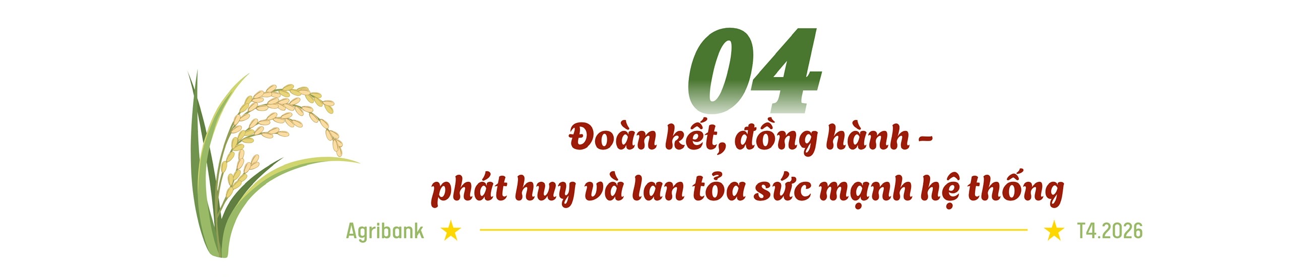 Trong nội bộ, Agribank tiếp tục củng cố sự gắn kết trên nền tảng thống nhất ý chí và hành động; xây dựng môi trường làm việc chuyên nghiệp, minh bạch, đồng thời phát huy trí tuệ tập thể như một nguồn lực nội sinh quan trọng. Sự phối hợp giữa các đơn vị được tổ chức bảo đảm tính liên thông, cộng hưởng và gia tăng hiệu quả trong toàn hệ thống.