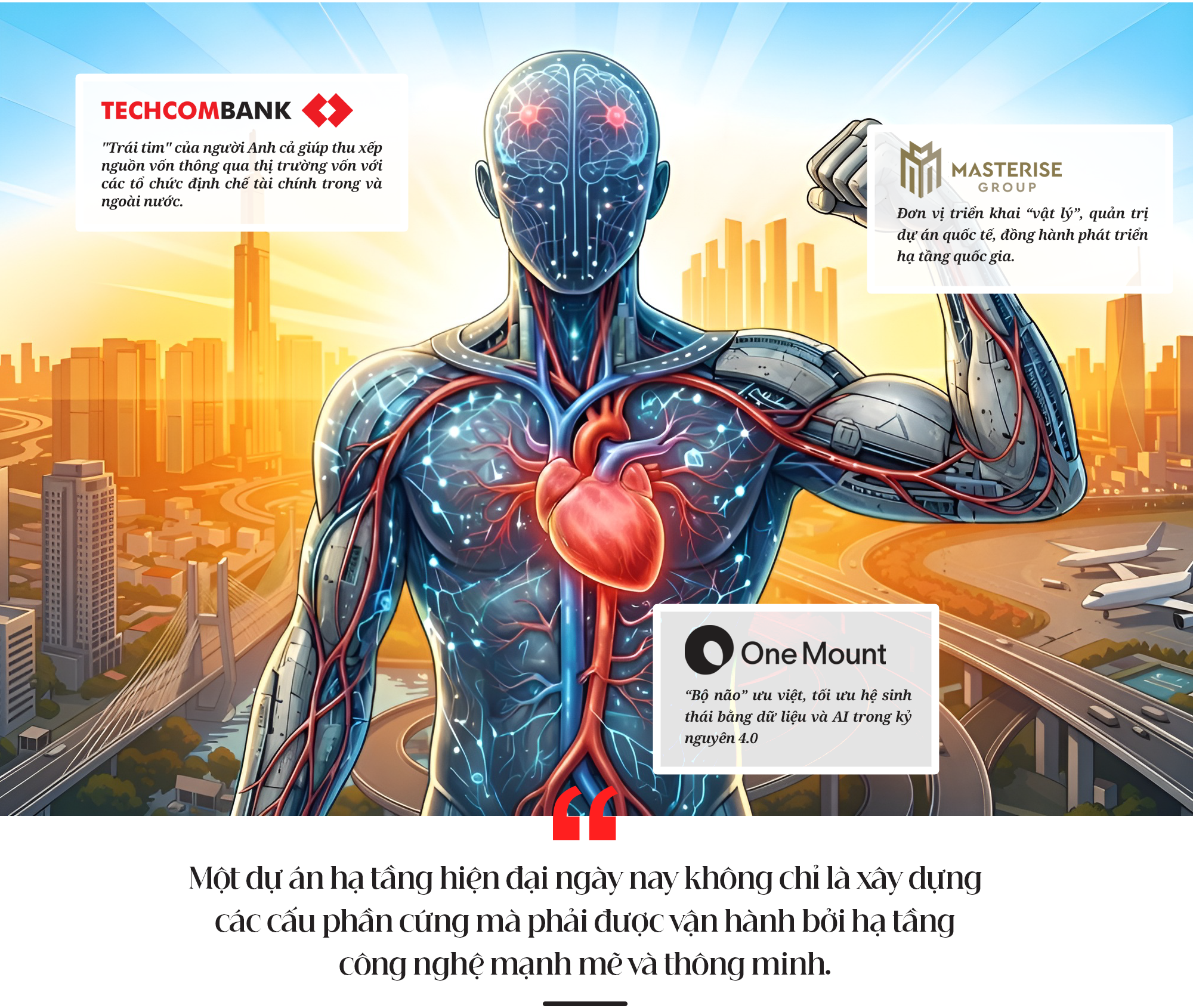 Nếu ngân hàng lo thu xếp dòng vốn thì Masterise Group là đơn vị triển khai "vật lý". Không chỉ dừng lại ở các khu đô thị hạng sang, năng lực quản trị dự án phức tạp của Masterise Group đã được chứng minh qua các dự án quy mô lớn theo chuẩn quốc tế. Trong chiến lược mới, Masterise Group đóng vai trò kiến tạo cùng đất nước phát triển hạ tầng quốc gia, biến những bản vẽ quy hoạch thành những công trình cầu đường, sân bay top 10 thế giới.