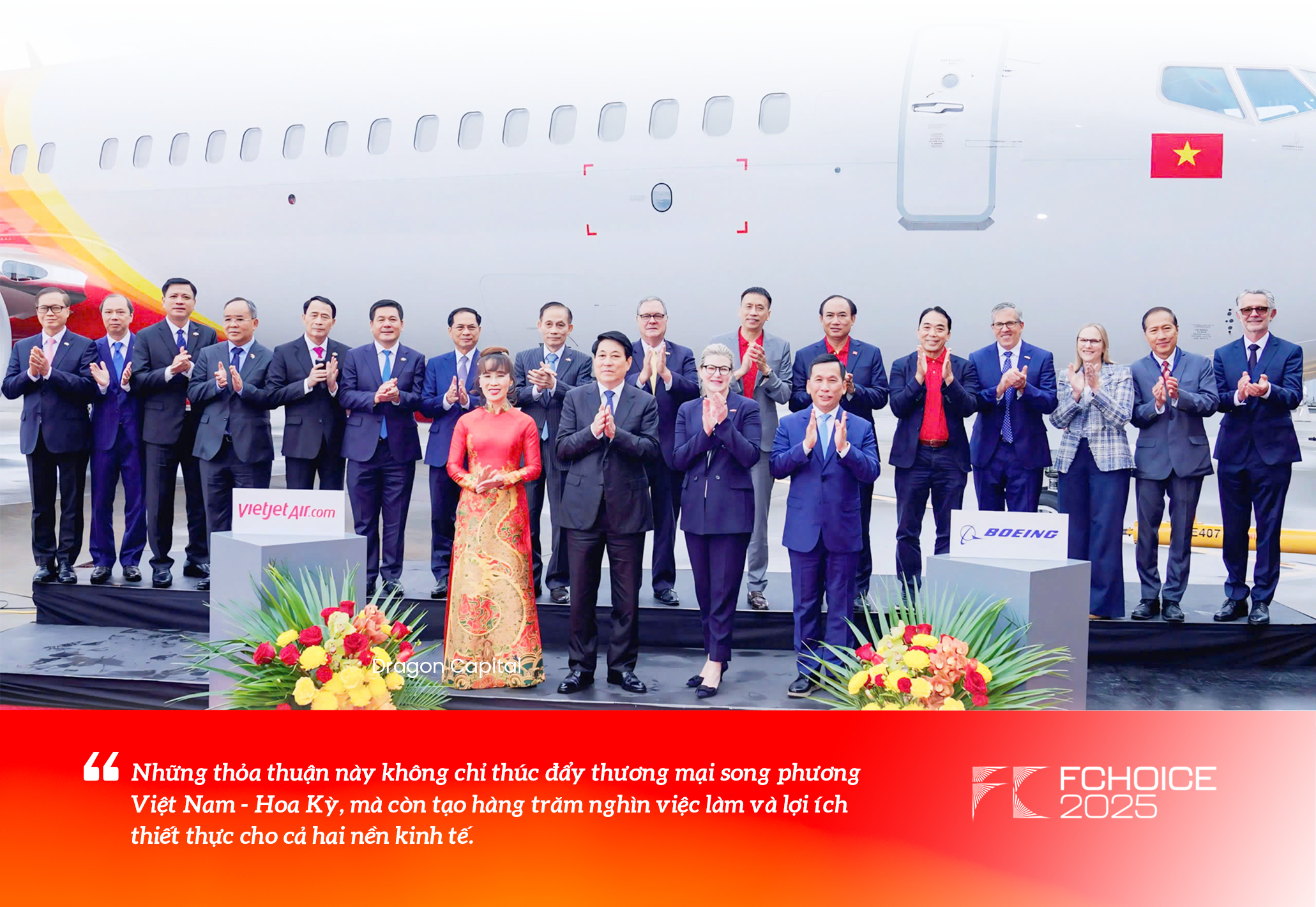 Tại Seattle, dưới sự chứng kiến của Chủ tịch nước Lương Cường, Vietjet nhận bàn giao chiếc Boeing 737-8 đầu tiên, hiện thực hóa đơn hàng 200 tàu bay trị giá 32 tỷ USD với Boeing.