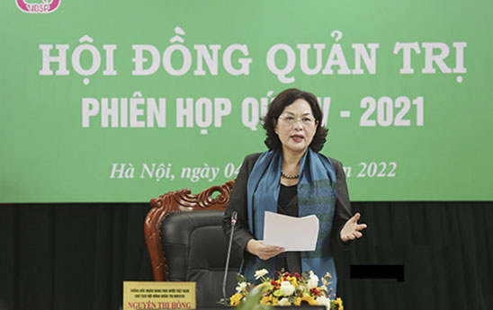 Phát biểu tại phiên họp, Thống đốc NHNN Việt Nam Nguyễn Thị Hồng kiêm Chủ tịch HĐQT NHCSXH nhấn mạnh: Trong năm 2021, dịch COVID-19 bùng phát trở lại trên diện rộng với biến chủng mới, mạnh hơn, tốc độ lây lan nhanh hơn gây ảnh hưởng đến nhiều lĩnh vực của đời sống kinh tế - xã hội. Tuy nhiên xác định nhiệm vụ quan trọng hàng đầu, tiên quyết là phải đảm bảo an toàn trong công tác phòng, chống dịch đồng hành với việc hoàn thành nhiệm vụ chính trị được giao, NHCSXH đã triển khai kịp thời, đồng bộ các giải pháp từ Trung ương đến địa phương, tuân thủ theo chỉ đạo của Ban Bí thư, Chính phủ, Thủ tướng Chính phủ, các Bộ, ban, ngành chức năng. Bên cạnh đó cán bộ trong toàn hệ thống NHCSXH đã cố gắng hoàn thành nhiệm vụ theo kế hoạch.