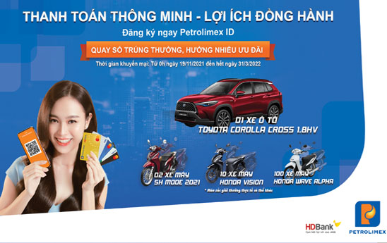 Theo đó, từ nay đến hết ngày 31/3/2022, tất cả các chủ thẻ HDBank đã đăng ký tài khoản Petrolimex ID, khi thanh toán bằng thẻ tại hệ thống xăng dầu của Petrolimex- sẽ được trải nghiệm dịch vụ trên ứng dụng công nghệ mới nhất về thanh toán - xác thực - tích điểm nhanh gọn, thuận tiện, tự động hóa cao, an toàn tuyệt đối.