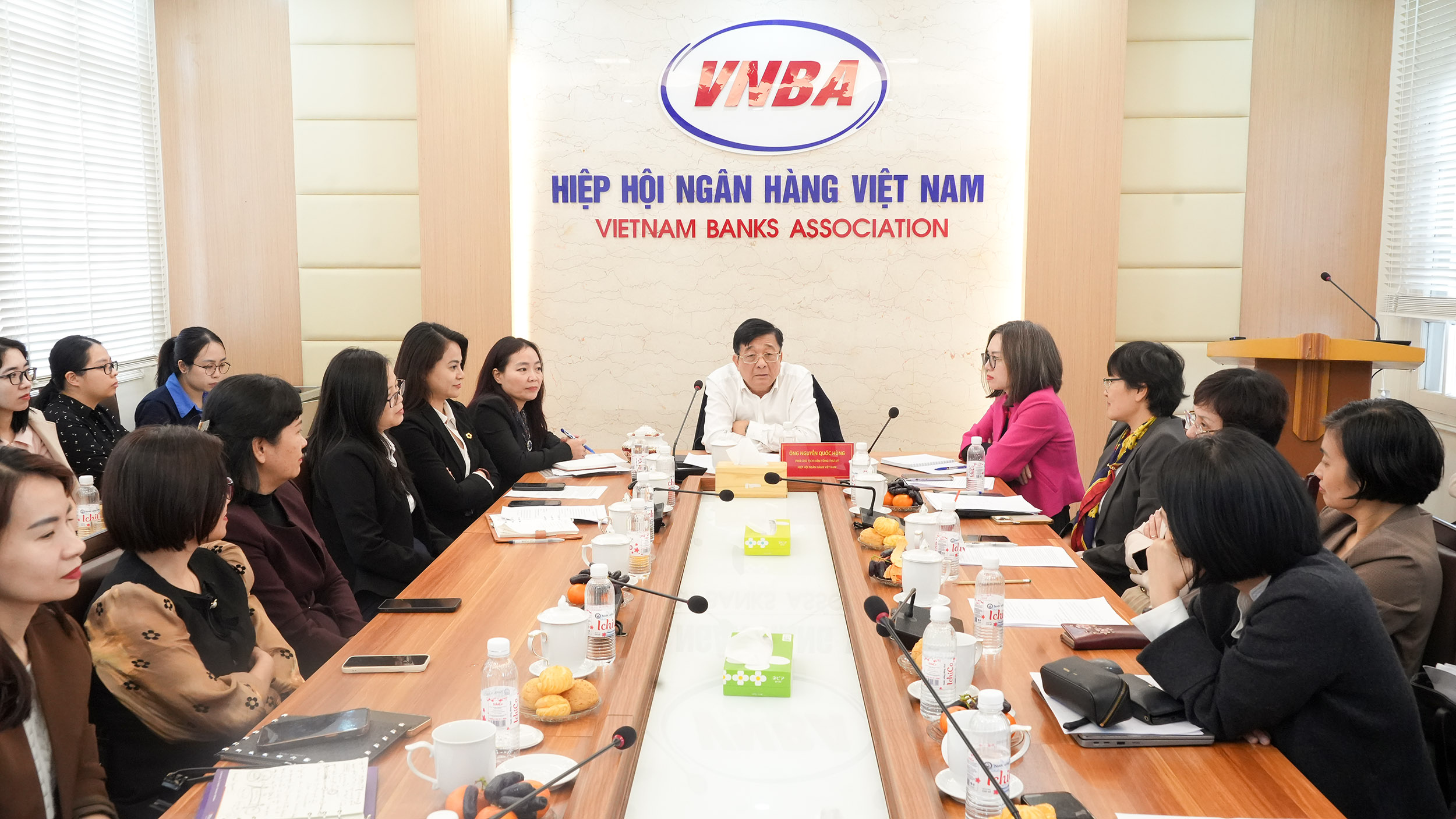Tham dự cuộc họp còn có đại diện lãnh đạo một số ban, đơn vị chức năng thuộc Cơ quan Thường trực VNBA; đại diện Nhóm công tác Ngân hàng nước ngoài (gồm MUFG, Mizuho, Standard Chartered, HSBC, CitiBank, UOB, ANZ); cùng đại diện một số ngân hàng hội viên trong nước như Vietcombank, VietinBank, Agribank, BIDV, Techcombank, VPBank, TPBank, SeABank, NCB, PVcomBank và MSB.