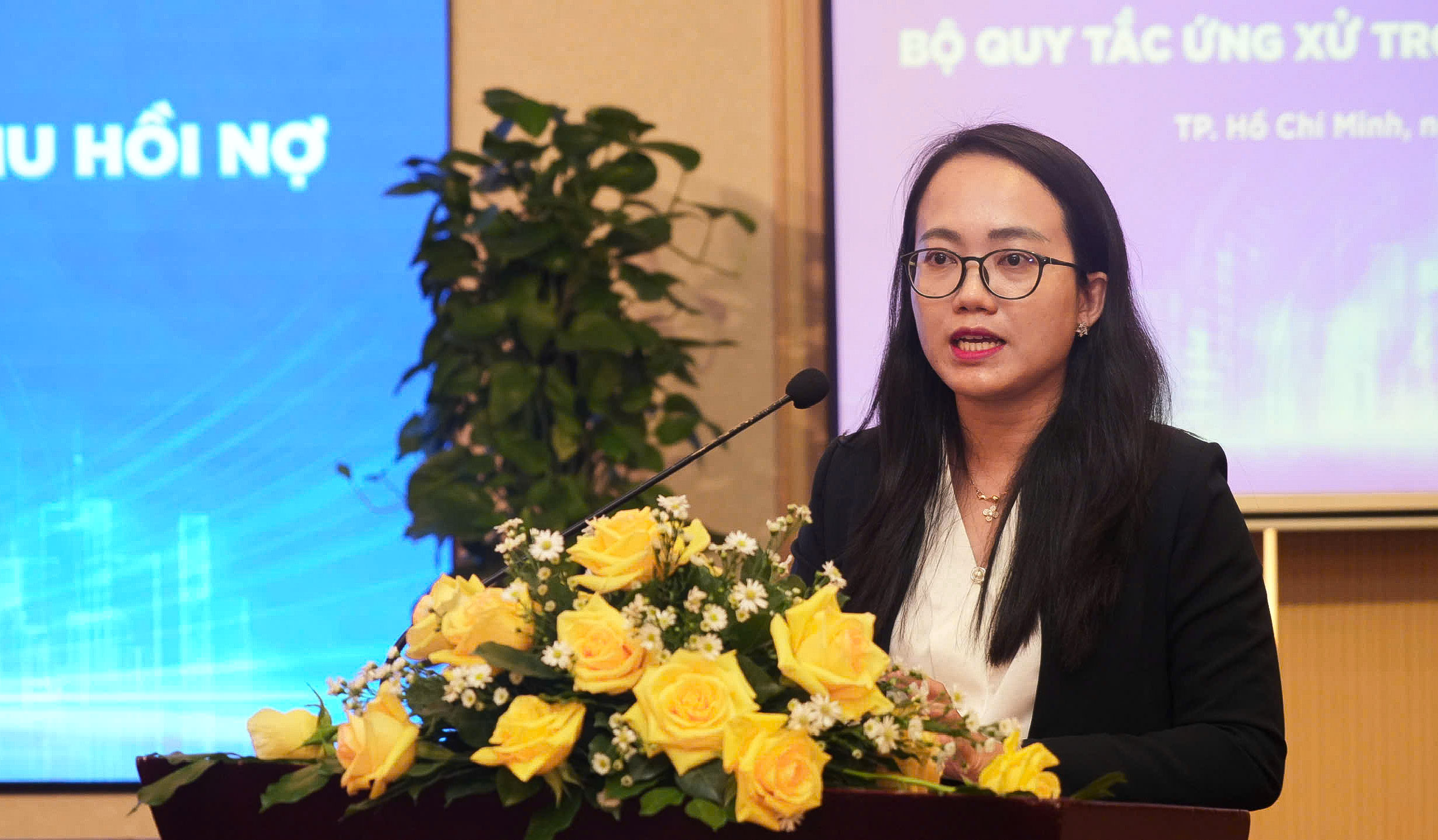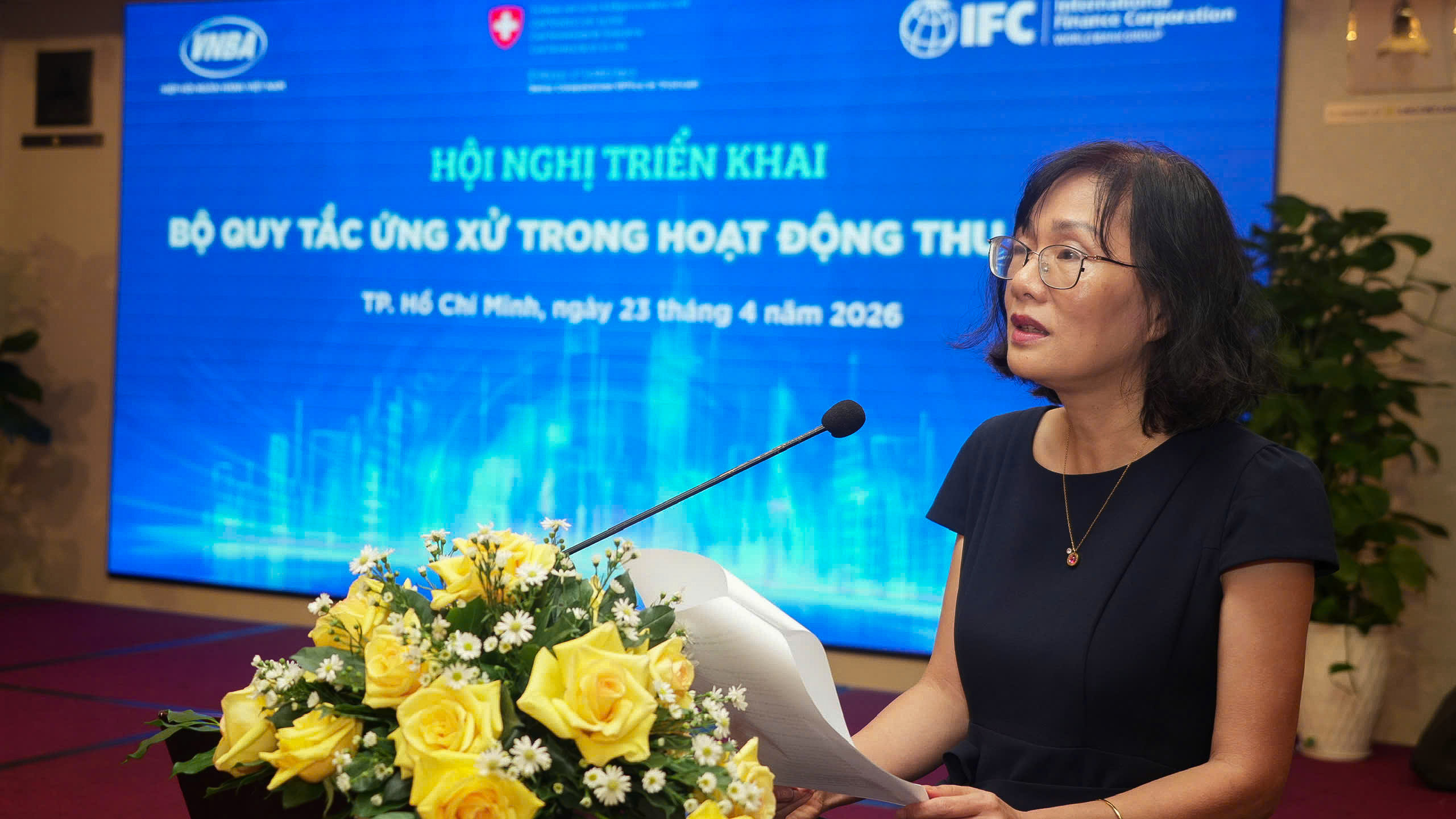 Phát biểu khai mạc hội nghị, bà Phạm Liên Anh - Trưởng Chương trình Kinh tế và Tư vấn Chính sách khu vực Mekong (Tổ chức IFC) đánh giá việc ra mắt Bộ Quy tắc ứng xử trong hoạt động thu hồi nợ là một cột mốc quan trọng, đánh dấu bộ quy tắc đầu tiên thuộc loại hình này dành cho các thành viên của VNBA.