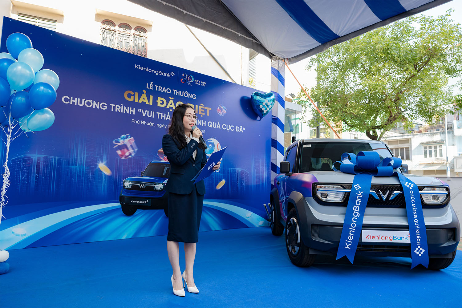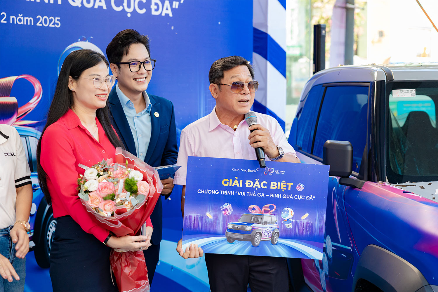 Sau hàng triệu mã dự thưởng được ghi nhận xuyên suốt thời gian diễn ra chương trình, ba khách hàng Nguyễn Đoàn Kết, Quách Đông Phến, Nguyễn Thị Nga đã may mắn trở thành chủ nhân của giải Đặc biệt với phần thưởng là một chiếc ô tô điện VinFast VF3. Việc lựa chọn dòng xe điện này là lời gửi gắm của KienlongBank về định hướng gắn kết lợi ích khách hàng với xu thế giao thông thân thiện, phù hợp với nhịp sống hiện đại và hướng tới phát triển bền vững.