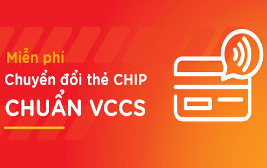 Để sớm được trải nghiệm chiếc thẻ chip nội địa với nhiều tiện ích vượt trôi, khách hàng chỉ cần mang theo CMND/Hộ chiếu/Thẻ căn cước công dân ra Chi nhánh hoặc Phòng Giao dịch bất kỳ để được hỗ trợ chuyển đổi hoàn toàn miễn phí sang thẻ Chip chuẩn VCCS. Thẻ mới sẽ được phát hành sau 07 ngày làm việc.