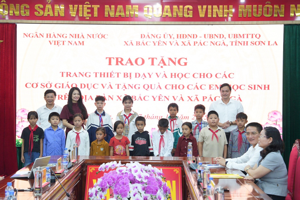 Với mong muốn đồng hành cùng địa phương trong việc nâng cao chất lượng giáo dục, bổ sung cơ sở vật chất phục vụ dạy và học, giúp học sinh tiếp cận công nghệ thông tin và phương pháp học hiện đại, đồng thời hỗ trợ thầy cô ứng dụng công nghệ trong giảng dạy, Đoàn công tác ngành Ngân hàng đã thực hiện chương trình trao tặng an sinh xã hội tại các xã Bắc Yên và Pắc Ngà. Cụ thể, các trường học tại xã Bắc Yên được hỗ trợ 15 bộ máy vi tính và 12 chiếc tivi với tổng giá trị 300 triệu đồng. Các cơ sở giáo dục tại xã Pắc Ngà được trao tặng 16 máy vi tính để bàn và 10 tivi, trị giá 278 triệu đồng. Bên cạnh đó, đoàn còn thăm hỏi và tặng 30 suất quà cho học sinh có hoàn cảnh khó khăn trên địa bàn xã Bắc Yên, gồm cả hiện vật và tiền mặt. Nguồn kinh phí thực hiện Chương trình là nguồn đóng góp của đoàn viên, người lao động ngành Ngân hàng được ủng hộ thông qua Quỹ bảo trợ Trẻ em Việt Nam.