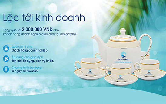 Từ ngày 03/6/2022, Ngân hàng Đại Dương (OceanBank) triển khai chương trình khuyến mại “Nhịp bình thường mới - Lộc tới kinh doanh”, tặng quà cho các khách hàng doanh nghiệp.