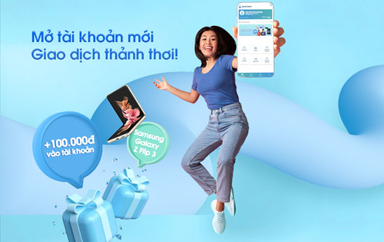 Khách hàng mở tài khoản trực tuyến, sẽ nhận được phần quà 100.000 đồng, chuyển trực tiếp vào tài khoản thanh toán và còn có cơ hội nhận điện thoại Samsung Galaxy Z Flip 3.