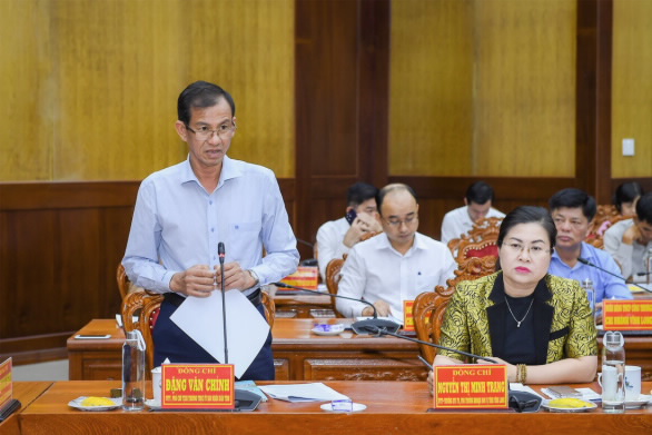 Đồng chí Đặng Văn Chính - Phó Chủ tịch Thường trực UBND tỉnh Vĩnh Long báo cáo tại buổi làm việc