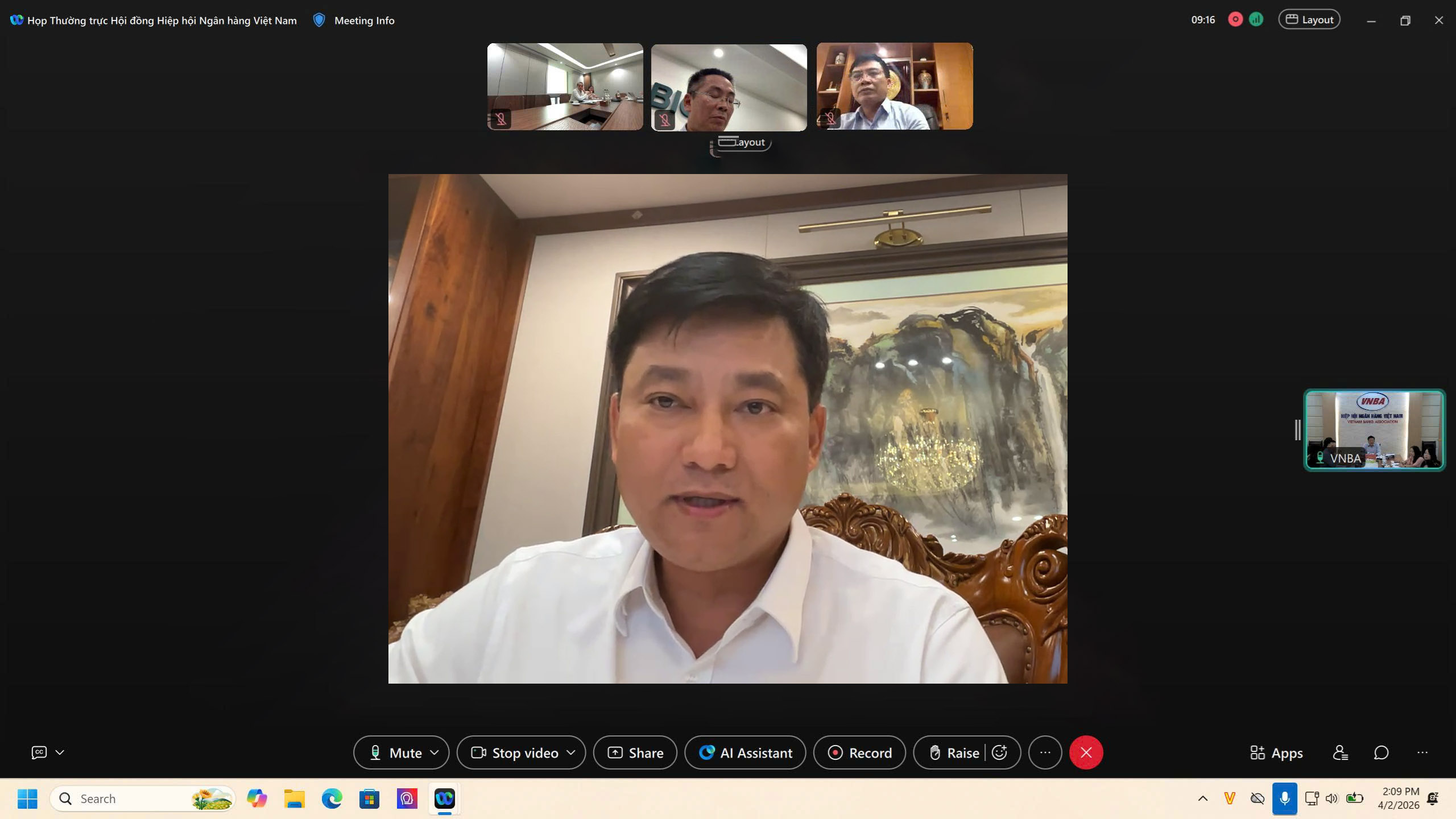 Ông Phạm Toàn Vượng - Chủ tịch Hội đồng VNBA, Thành viên Hội đồng Thành viên, Tổng Giám đốc Agribank cùng các thành viên Thường trực Hội đồng VNBA tham gia họp trực tuyến