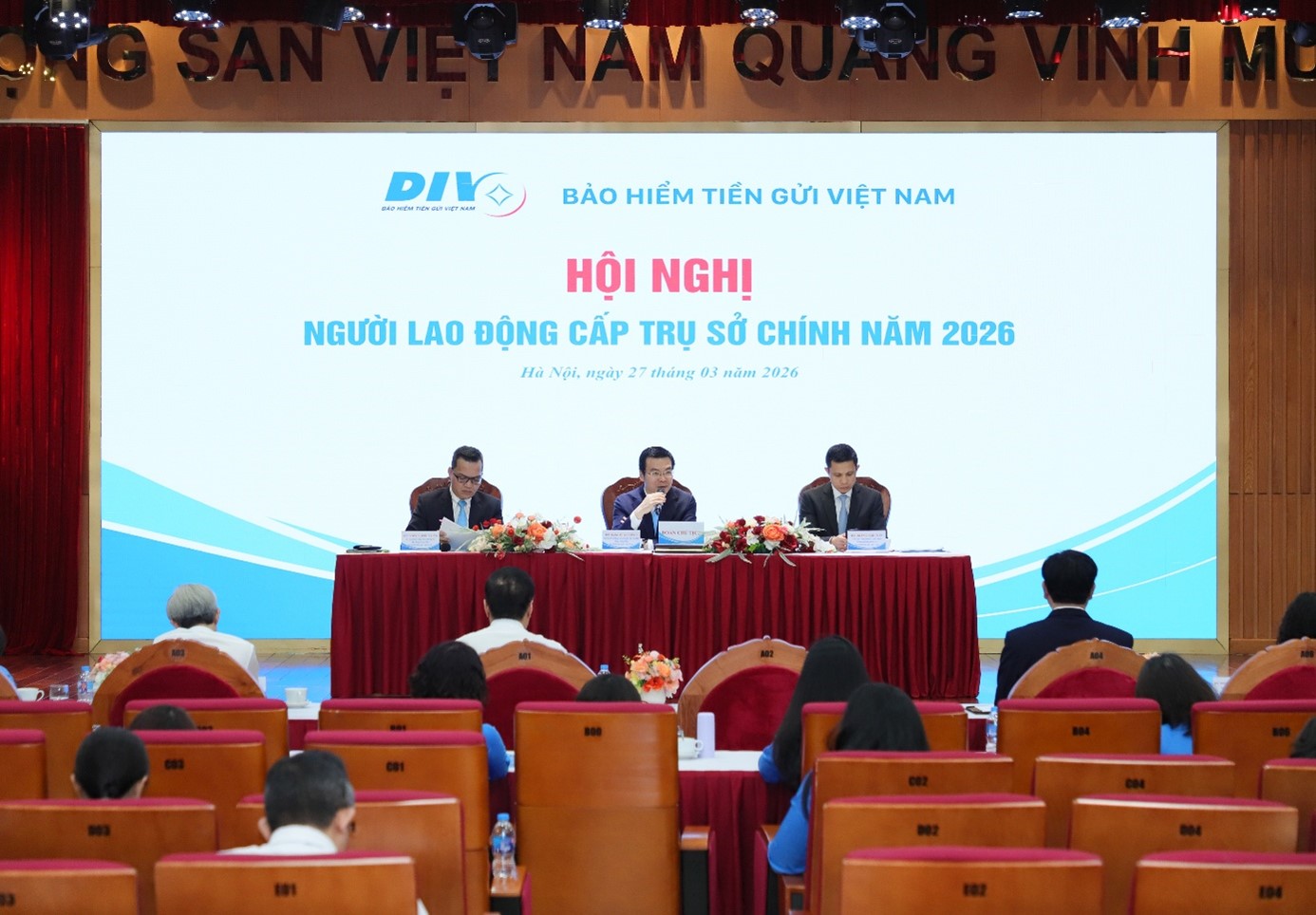 Tham dự hội nghị có ông Phạm Bảo Lâm – Bí thư Đảng ủy, Chủ tịch Hội đồng quản trị (HĐQT); ông Đặng Duy Cường – Phó Bí thư Đảng uỷ, Thành viên HĐQT, Tổng Giám đốc; ông Ngô Quang Lương – Ủy viên Ban Thường vụ Đảng uỷ, Thành viên HĐQT, Chủ tịch Công đoàn BHTGVN; các ông, bà Thành viên HĐQT, Kiểm soát viên; các ông, bà Thành viên Ban điều hành; đại diện Đảng ủy, Ban chấp hành Công đoàn, Đoàn Thanh niên BHTGVN và hơn 180 đại biểu đại diện cho cán bộ, người lao động tại Trụ sở chính.