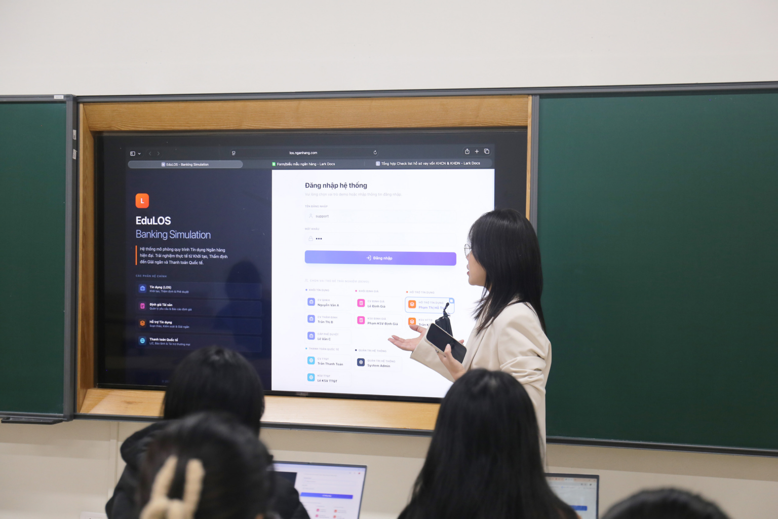 Tại Trường Kinh tế – Đại học Bách khoa Hà Nội, FTMI và UB Academy đã triển khai giải pháp mô phỏng đạt giải này để giúp sinh viên tiếp cận trực tiếp với hệ thống lõi ngân hàng. Thay vì chỉ học lý thuyết, sinh viên sẽ được “nhúng mình” vào môi trường số hóa thực tế, rèn luyện năng lực thực thi nghiệp vụ thông qua 2 học phần then chốt: