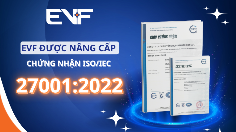 Công ty Tài chính Tổng hợp Cổ phần Điện lực (EVF) vừa được Trung tâm Chứng nhận Phù hợp (QUACERT) tái đánh giá và xác nhận Hệ thống quản lý an toàn thông tin phù hợp với Tiêu chuẩn ISO/IEC 27001:2022, phiên bản mới nhất hiện nay.