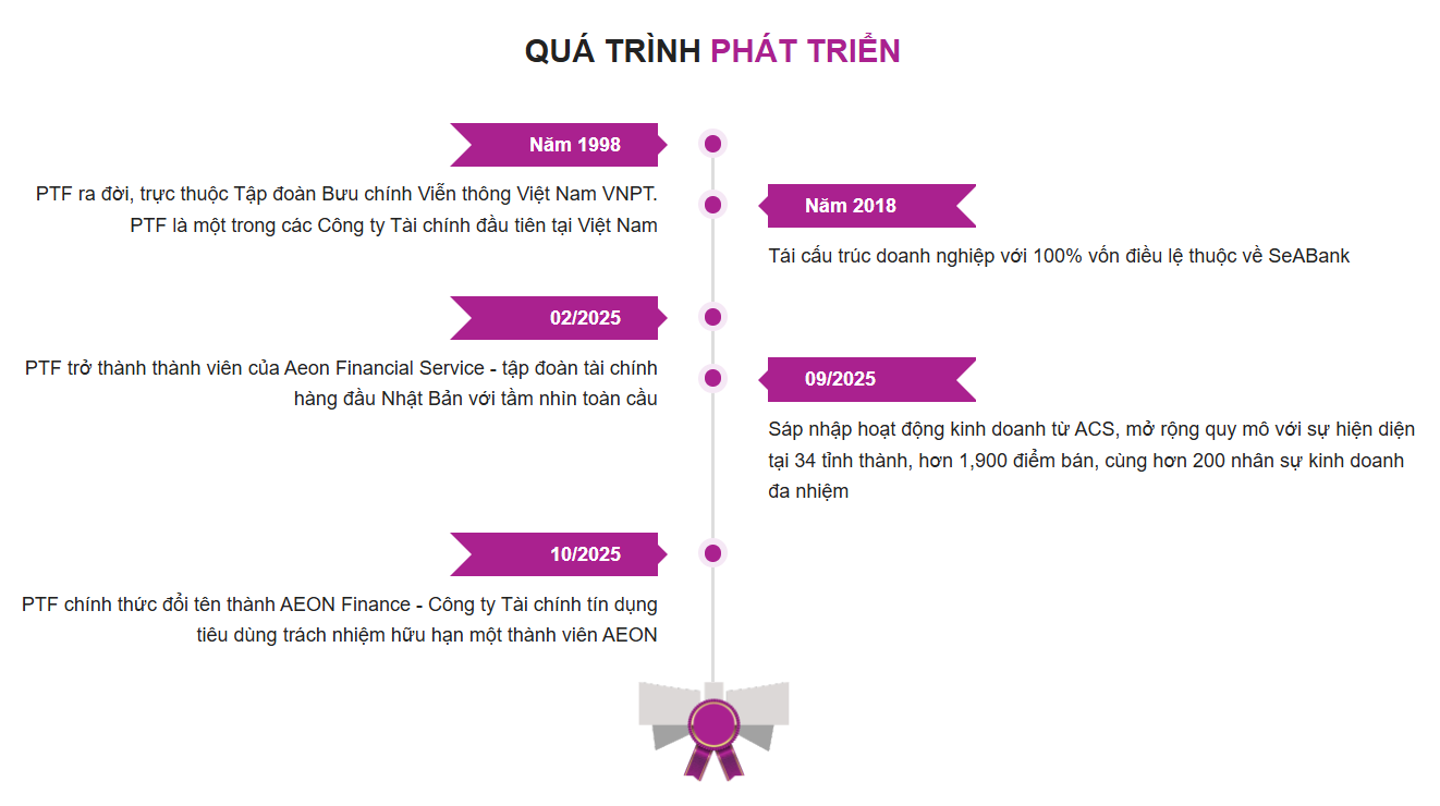 Ngày 03/02/2025, Ngân hàng TMCP Đông Nam Á (SeABank, mã chứng khoán: SSB) đã chính thức tổ chức Lễ bàn giao Công ty Tài chính TNHH Một thành viên Bưu điện (PTF) cho đối tác AEON Financial Service Co., Ltd. (AEON Financial) - thành viên thuộc mảng tài chính của AEON Group.