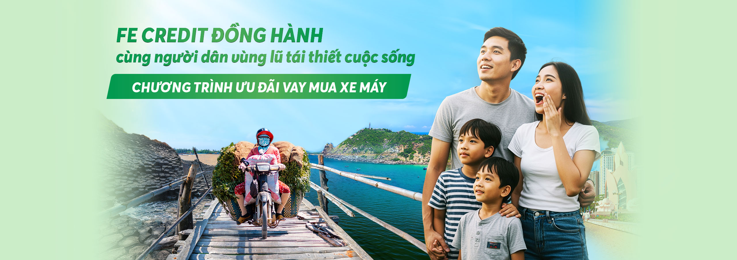 FE CREDIT ưu đãi vay mua xe máy lãi suất từ 0,5%, hỗ trợ người dân miền Trung tái thiết cuộc sống