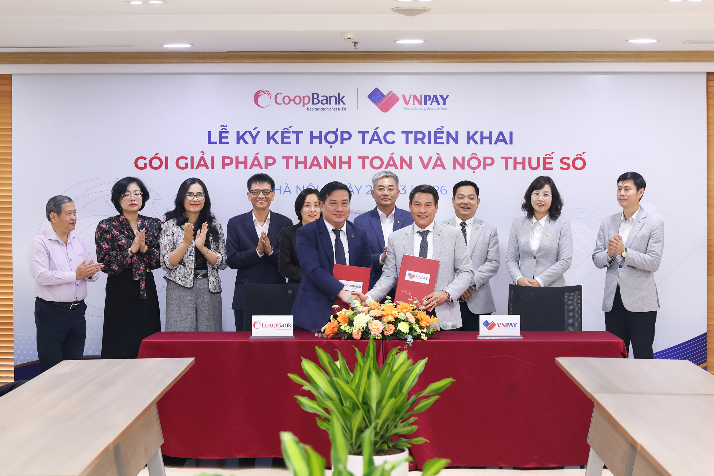 Hà Nội, ngày 20/3/2026, Ngân hàng Hợp tác xã Việt Nam (Co-opBank) và Công ty CP Giải pháp Thanh toán Việt Nam (VNPAY) đã chính thức ký kết hợp tác triển khai gói giải pháp thanh toán và nộp thuế số dành cho hộ kinh doanh và doanh nghiệp. Gói giải pháp do Co-opBank và VNPAY hợp tác triển khai nhằm hỗ trợ hộ kinh doanh và doanh nghiệp tối ưu chi phí vận hành, đồng thời đáp ứng các quy định về chính sách thuế và hóa đơn điện tử.
