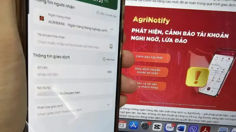 Theo thông tin từ Ngân hàng Nông nghiệp và Phát triển Nông thôn Việt Nam (Agribank), đơn vị đang vận hành dịch vụ AgriNotify – giải pháp tự động phát hiện và cảnh báo tài khoản có dấu hiệu gian lận, lừa đảo ngay tại thời điểm khách hàng thực hiện giao dịch chuyển tiền.