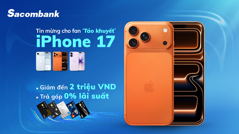 Sacombank ưu đãi đến 2 triệu đồng cho chủ thẻ mua iPhone 17 Series