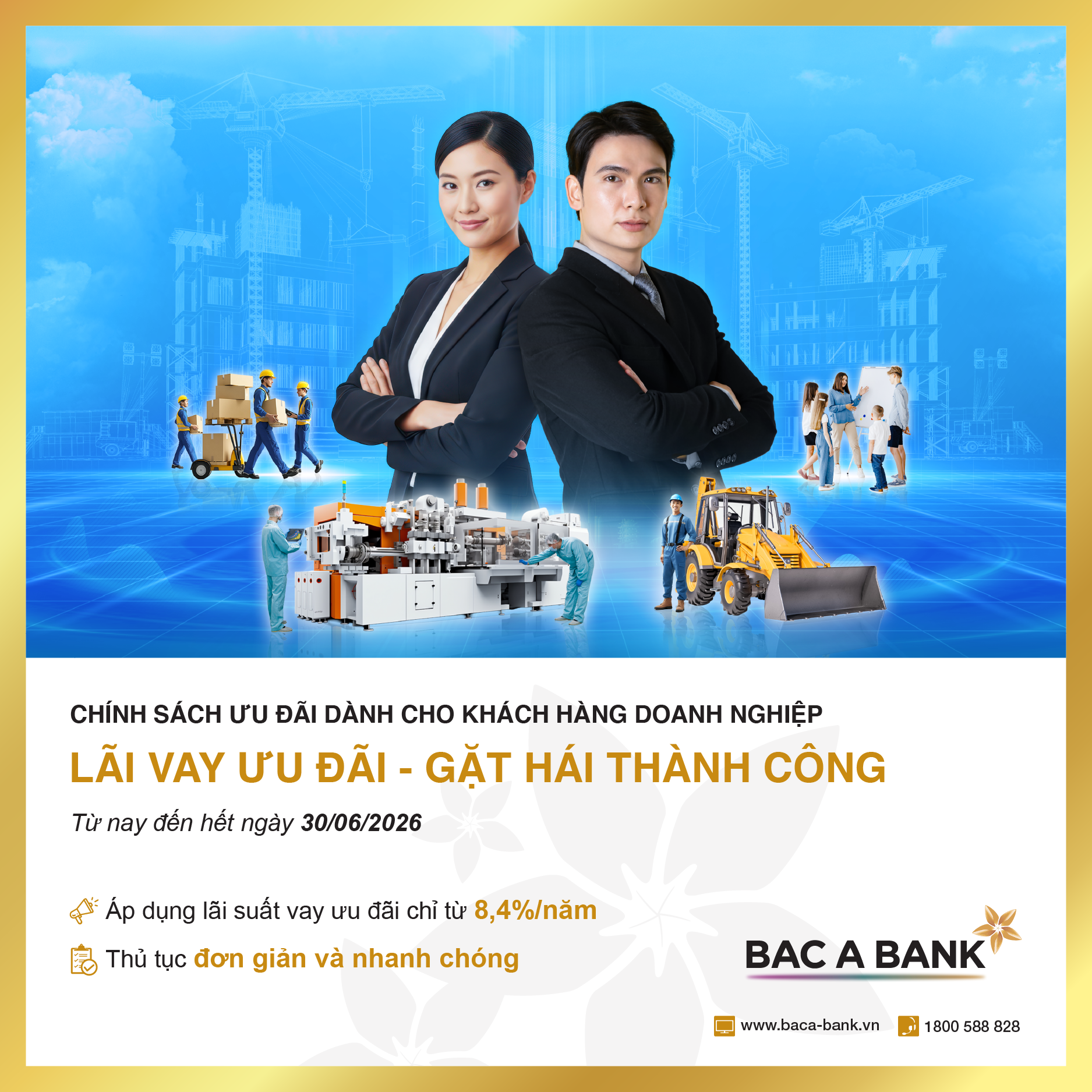 Trong bối cảnh doanh nghiệp ngày càng ưu tiên kiểm soát dòng tiền và tối ưu chi phí tài chính, Ngân hàng TMCP Bắc Á (Bac A Bank) triển khai chương trình tín dụng “Lãi vay ưu đãi - Gặt hái thành công”, áp dụng trong 6 tháng đầu năm 2026, nhằm hỗ trợ nhu cầu vốn ngắn hạn của khách hàng doanh nghiệp.