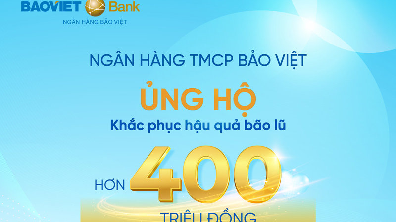 Hưởng ứng lời kêu gọi của Tập đoàn Bảo Việt, tập thể cán bộ, nhân viên Ngân hàng Bảo Việt (BAOVIET Bank) đã chung tay quyên góp hơn 400 triệu đồng nhằm hỗ trợ đồng bào miền Bắc và Bắc Trung Bộ khắc phục hậu quả do các cơn bão số 9, 10, 11 gây ra.