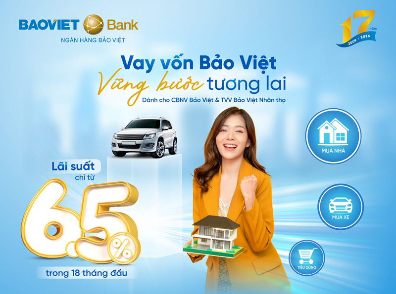 Từ ngày 01/01 đến 31/03/2026, Ngân hàng TMCP Bảo Việt (BAOVIET Bank) tiếp tục triển khai chương trình ưu đãi vay vốn dành cho khách hàng cá nhân mang tên “Vay an tâm - Nâng tầm cuộc sống”, với lãi suất chỉ từ 3%/năm và hạn mức lên tới 900 tỷ đồng.