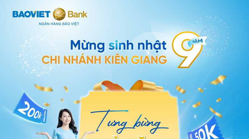 Từ 15/12/2025 đến 31/12/2025, Ngân hàng TMCP Bảo Việt (BAOVIET Bank) chính thức triển khai chương trình tri ân khách hàng mở mới thẻ tiết kiệm hoặc tái tục tiền gửi bằng VND tại chi nhánh Kiên Giang và Bình Dương, nhân dịp kỷ niệm ngày thành lập của hai chi nhánh.