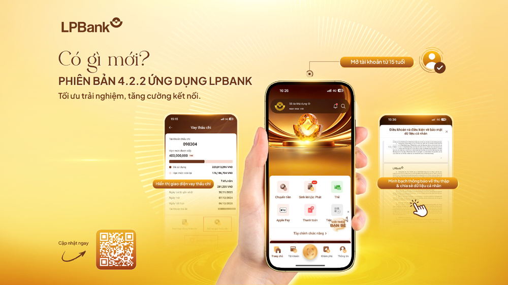 Ngày 02/12/2025, Ngân hàng TMCP Lộc Phát Việt Nam (LPBank) chính thức nâng cấp ứng dụng ngân hàng số - LPBank lên phiên bản 4.2.2, bổ sung nhiều tính năng quan trọng nhằm nâng cao trải nghiệm khách hàng, tăng cường bảo mật và mở rộng khả năng tiếp cận tài chính số.