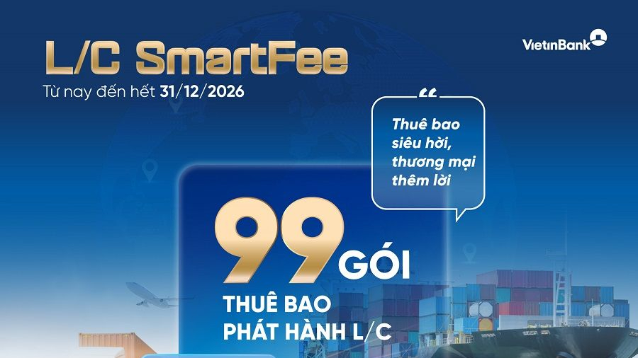 Ngân hàng TMCP Công Thương Việt Nam (VietinBank) vừa triển khai chương trình L/C SmartFee với 99 gói thuê bao L/C ưu đãi, mức giá chỉ từ 10 triệu đồng/gói, tổng doanh số bảo lãnh lên đến 950 tỷ đồng. Chương trình áp dụng từ nay đến hết ngày 31/12/2026.