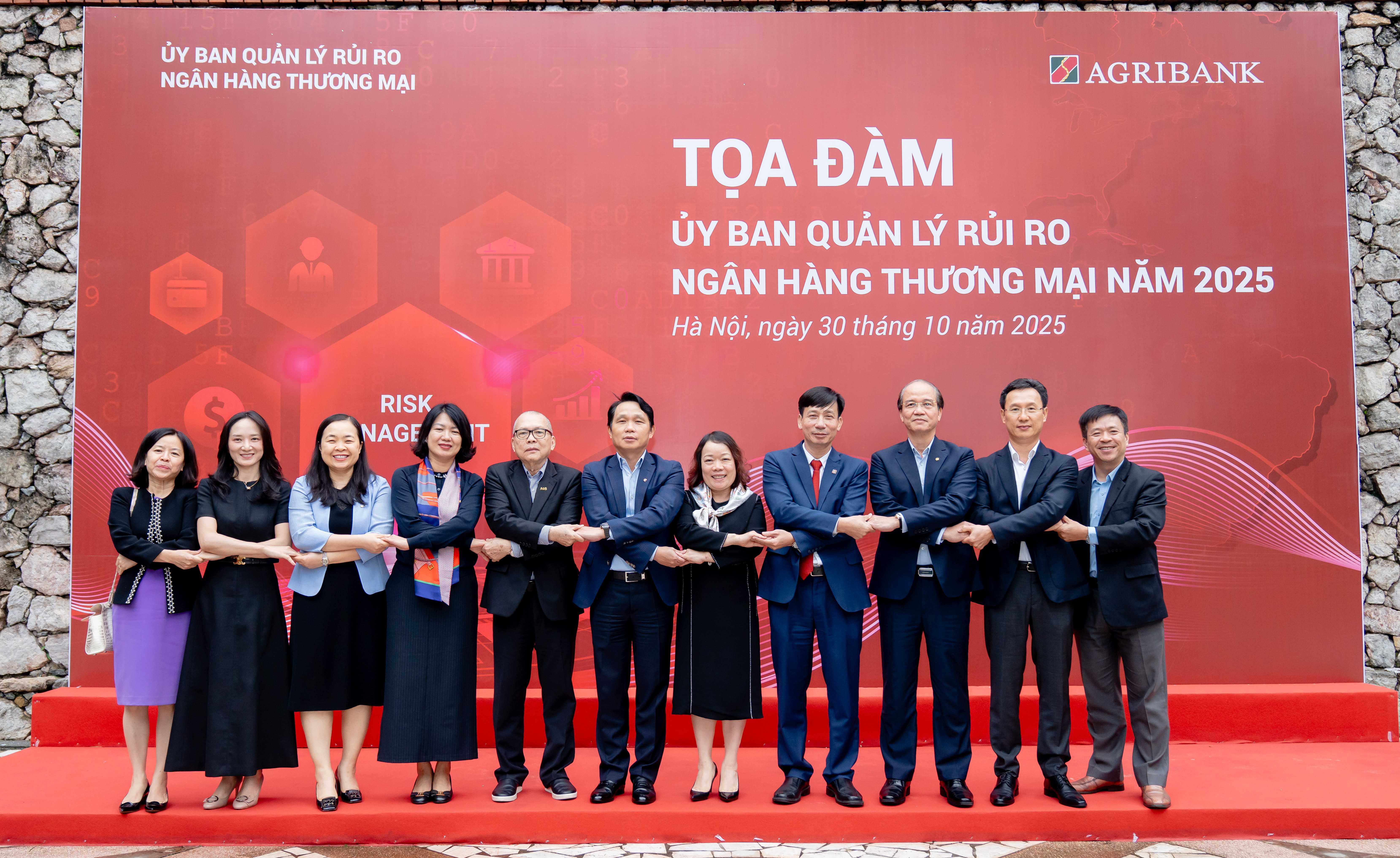 Ngày 30/10/2025, Ngân hàng Nông nghiệp và Phát triển nông thôn Việt Nam (Agribank) tổ chức Tọa đàm Ủy ban Quản lý rủi ro ngân hàng thương mại (NHTM) năm 2025 với chủ đề “Quản trị rủi ro ngân hàng thương mại trong tình hình mới”. Tọa đàm có sự tham gia của đại diện Hiệp hội Ngân hàng Việt Nam, Cục Quản lý, giám sát tổ chức tín dụng - Ngân hàng Nhà nước, Công ty TNHH Thuế và Tư vấn KPMG và 11 NHTM hoạt động tại Việt Nam.