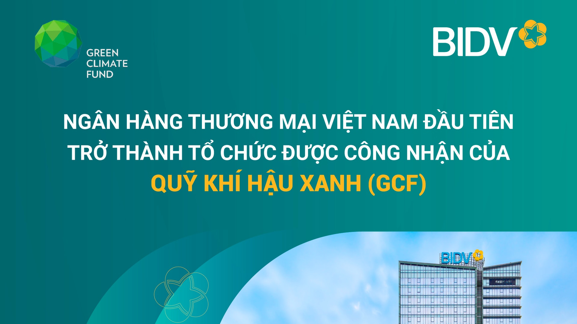 Ngày 28/10/2025, Ngân hàng TMCP Đầu tư và Phát triển Việt Nam (BIDV) chính thức được công nhận là Tổ chức được ủy quyền của Quỹ Khí hậu Xanh (GCF), trở thành ngân hàng thương mại đầu tiên tại Việt Nam được GCF trao quyền tiếp cận trực tiếp nguồn vốn ưu đãi cho các dự án tài chính khí hậu.