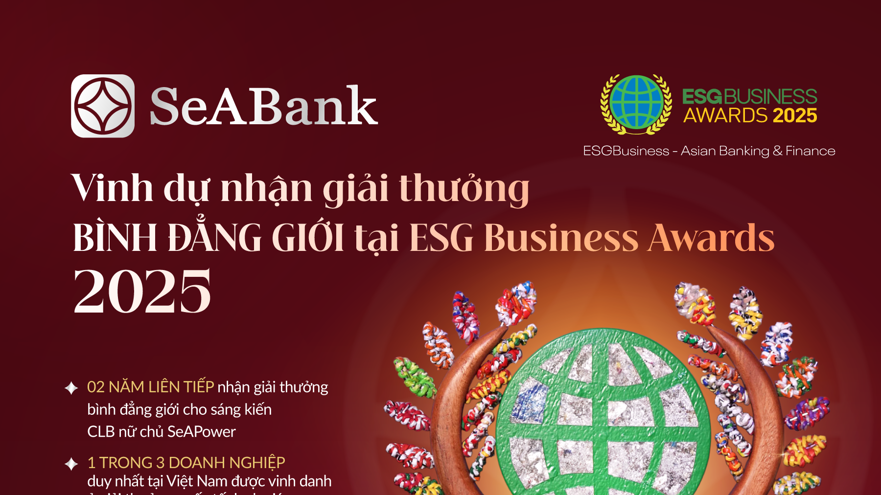 Ngân hàng TMCP Đông Nam Á (SeABank, HOSE: SSB) vừa được vinh danh đồng thời 2 giải thưởng Nơi làm việc tốt nhất Việt Nam 2025 (Anphabe) và ESG Business Awards 2025 (Tạp chí ESG Business - Asian Banking & Finance). Đây là dấu mốc kép trên hành trình kiến tạo môi trường làm việc hạnh phúc, bình đẳng và trao quyền cho nữ của Ngân hàng, đúng với tầm nhìn “đặt con người và cộng đồng lên hàng đầu” mà SeABank luôn bền bỉ hướng tới.