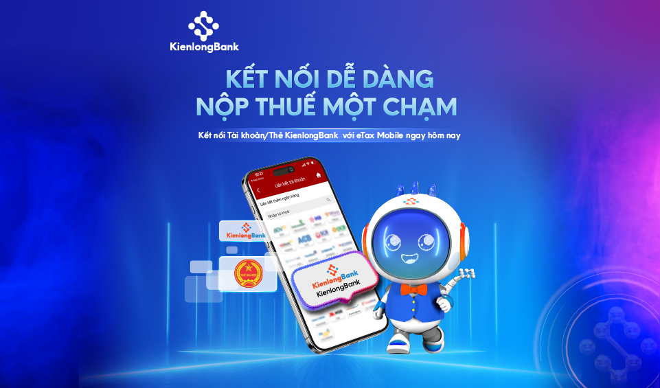 Ngân hàng TMCP Kiên Long (KienlongBank) chính thức được tích hợp trên ứng dụng eTax Mobile, cho phép khách hàng liên kết tài khoản KienlongBank Plus để thực hiện nộp thuế điện tử nhanh chóng, an toàn và thuận tiện ngay tại nhà.