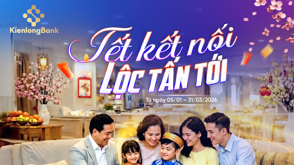 Đồng hành cùng khách hàng trong mùa Tết 2026, Ngân hàng TMCP Kiên Long (KienlongBank) chính thức triển khai chương trình huy động tiền gửi tiết kiệm “Tết kết nối - Lộc tấn tới”, với nhiều ưu đãi và quà tặng thiết thực.