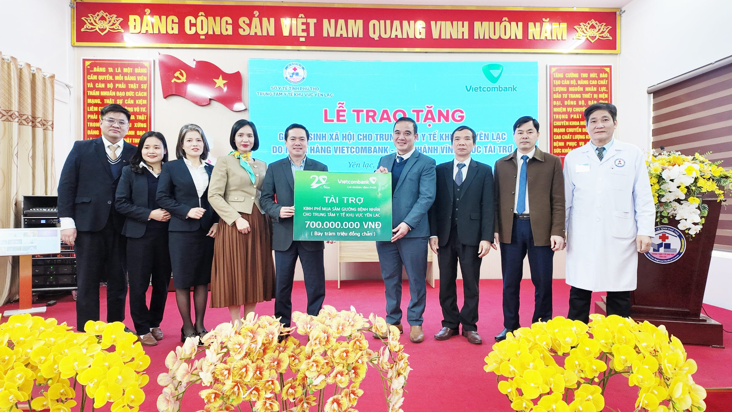 Chiều ngày 26/01, Trung tâm Y tế khu vực Yên Lạc (Phú Thọ) vinh dự đón nhận gói an sinh xã hội trị giá 700 triệu đồng do Ngân hàng TMCP Ngoại thương Việt Nam (Vietcombank) – Chi nhánh Vĩnh Phúc trao tặng. Đây là hoạt động mang ý nghĩa thiết thực, thể hiện tinh thần trách nhiệm xã hội và sự đồng hành của doanh nghiệp đối với sự nghiệp chăm sóc sức khỏe nhân dân trên địa bàn.