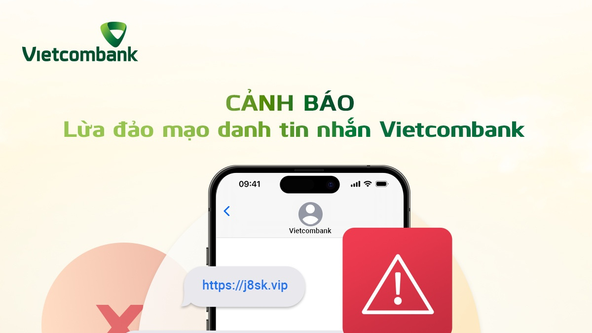 Trong thời gian gần đây, Vietcombank tiếp tục nhận được phản ánh về việc kẻ gian gửi tin nhắn SMS giả mạo Vietcombank với nội dung thông báo điểm thưởng tích lũy sắp hết hạn và hướng dẫn khách hàng truy cập vào một đường dẫn để đổi quà hoặc nhận hoàn tiền với đặc điểm.