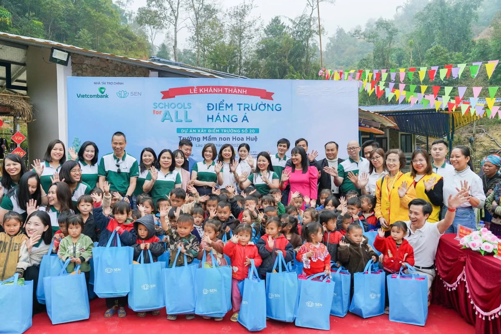 Ngày 06/12/2025, giữa núi rừng Khao Mang (Mù Cang Chải, Lào Cai), điểm trường Háng Á - trường mầm non Hoa Huệ - chính thức được khánh thành trong niềm vui của thầy cô, phụ huynh và những ánh mắt trẻ thơ rạng rỡ. Đó không chỉ là một buổi lễ trang trọng, mà là dấu mốc đẹp đẽ trên hành trình Vietcombank cùng các đơn vị thiện nguyện gieo mầm tri thức cho những bản làng vùng cao còn nhiều gian khó.