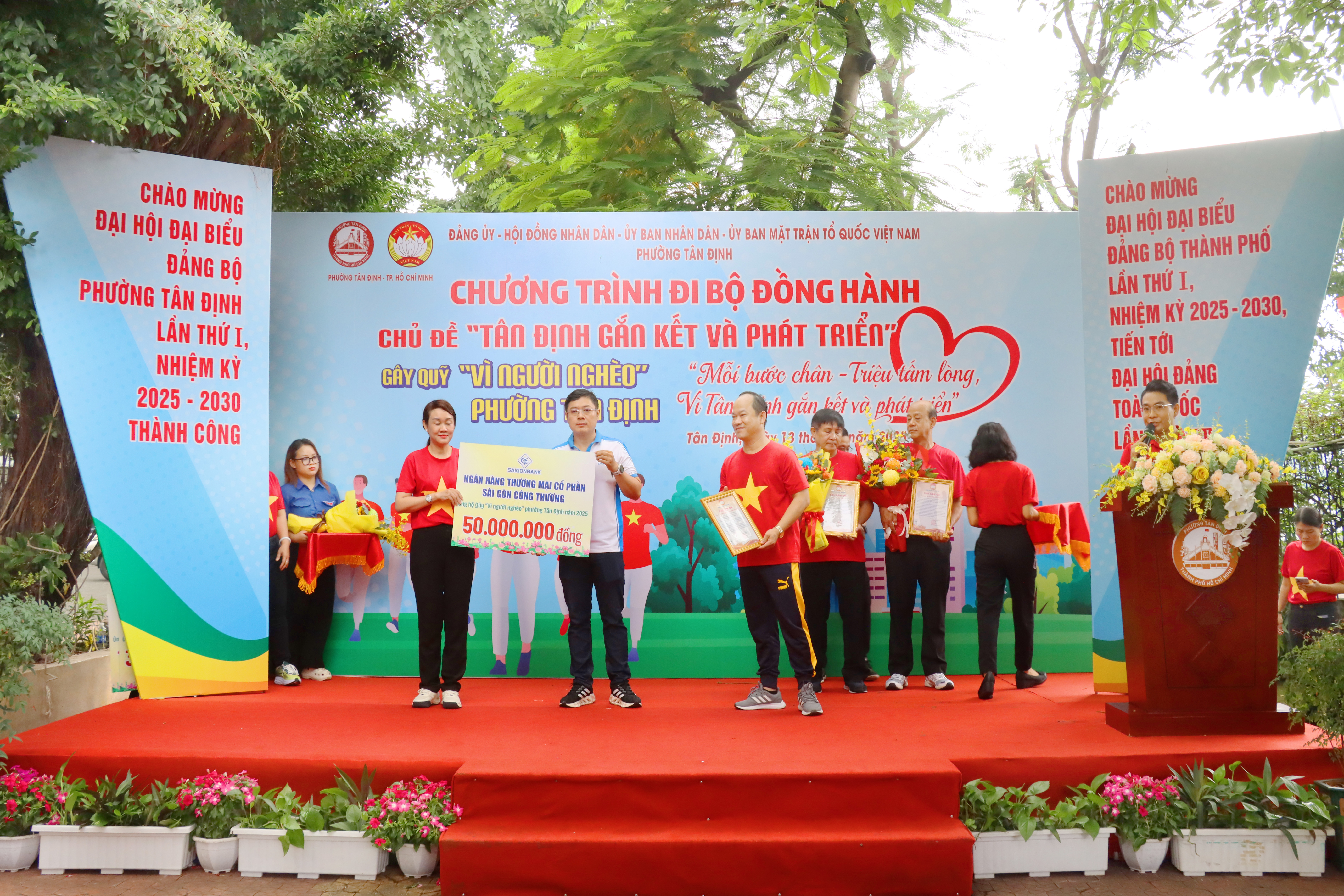 Hưởng ứng lời kêu gọi của Ủy ban Nhân dân phường Tân Định, sáng 13/9/2025, Ngân hàng TMCP Sài Gòn Công Thương - Chi nhánh Tân Định (SaiGonBank Tân Định) đã tham gia chương trình đi bộ đồng hành với chủ đề “Tân Định Gắn kết và Phát triển”, gây Quỹ “Vì người nghèo” phường Tân Định.