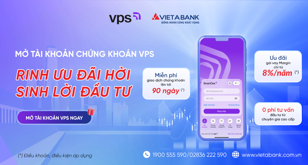 Với mong muốn mang đến những giải pháp tài chính tối ưu, Ngân hàng TMCP Việt Nam Thương Tín (VietABank) phối hợp cùng Công ty Cổ phần Chứng khoán VPS triển khai chương trình mở tài khoản chứng khoán trực tuyến với nhiều ưu đãi đặc quyền, giúp khách hàng dễ dàng khởi đầu hành trình đầu tư, gia tăng giá trị tài chính bền vững.