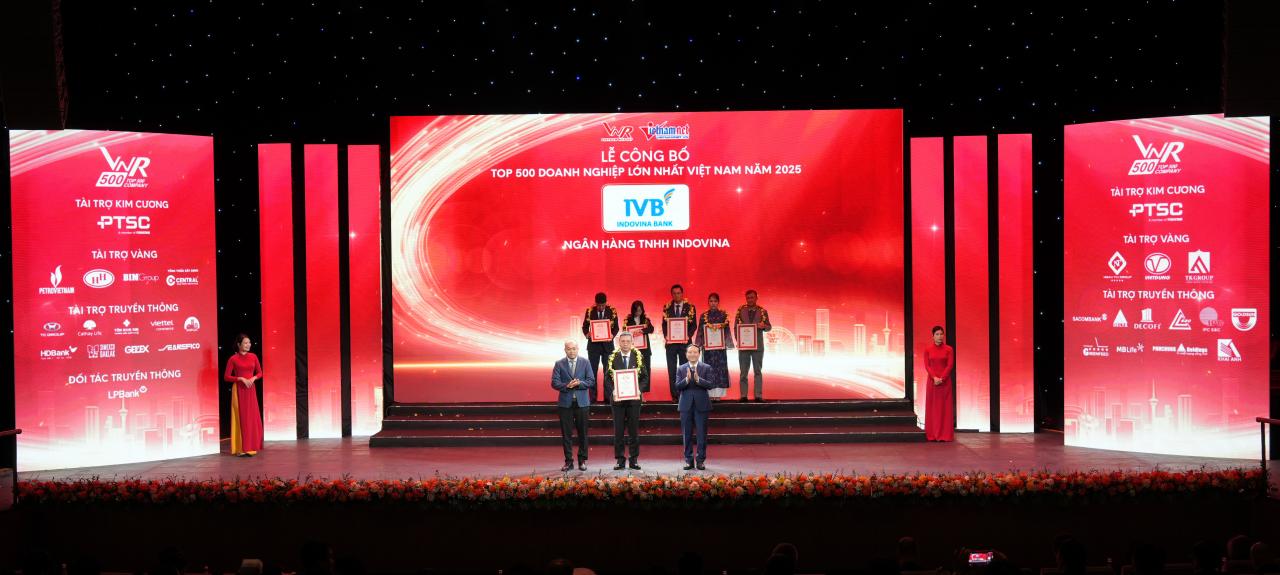 Chiều 08/01/2026, tại Hà Nội, Ngân hàng TNHH Indovina (IVB) đã được vinh danh trong Top 500 Doanh nghiệp Lớn nhất Việt Nam năm 2025 (VNR500).