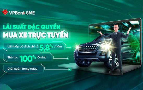 Từ nay đến hết 31/12/2021, khách hàng doanh nghiệp vừa và nhỏ (SME) có nhu cầu vay vốn tại Ngân hàng Việt Nam thịnh vượng (VPBank) để mua ôtô sẽ được hưởng lãi suất ưu đãi chỉ từ 5,8%/năm với thủ tục phê duyệt chỉ trong vòng 04 giờ.